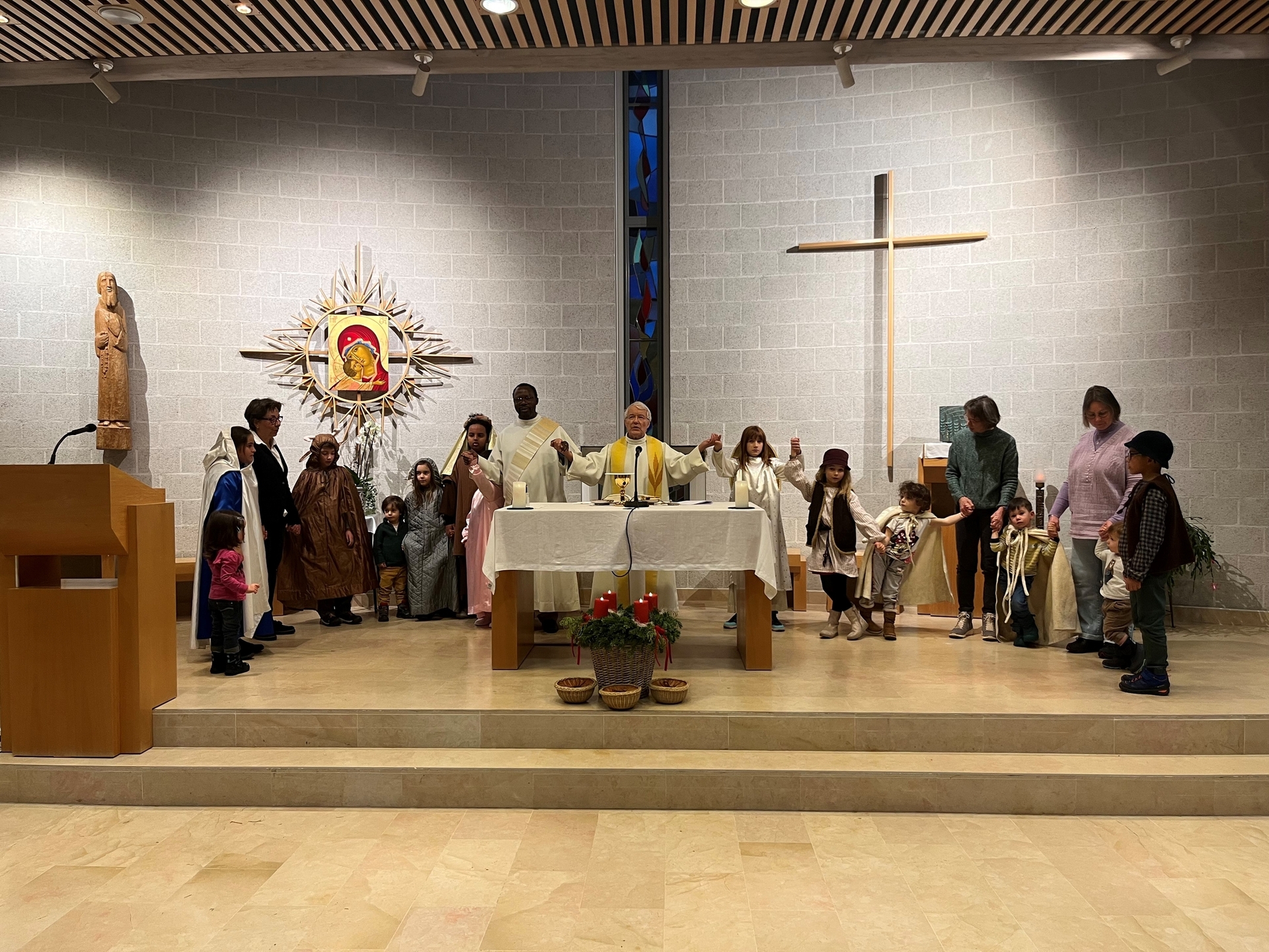Une magnifique messe présidée par le père Philippe Hennebicques, aumônier de la Résidence et concélébrée par notre diacre et répondant de la communauté paroissiale, Robert Nzobihindemyi qui a accompagné et préparé les enfants, assisté des catéchistes : Corinne, Catherine, Claudine et Elisabeth.