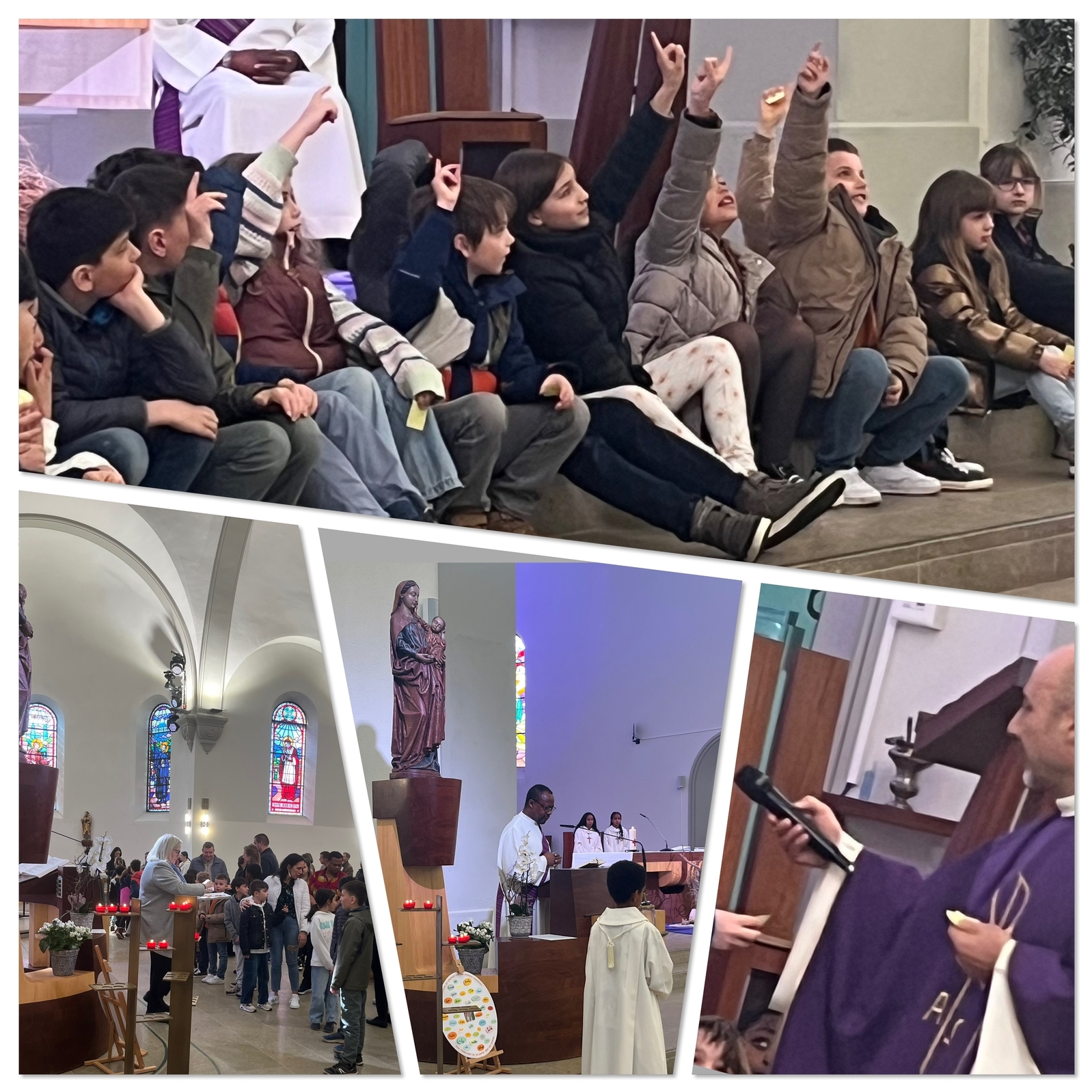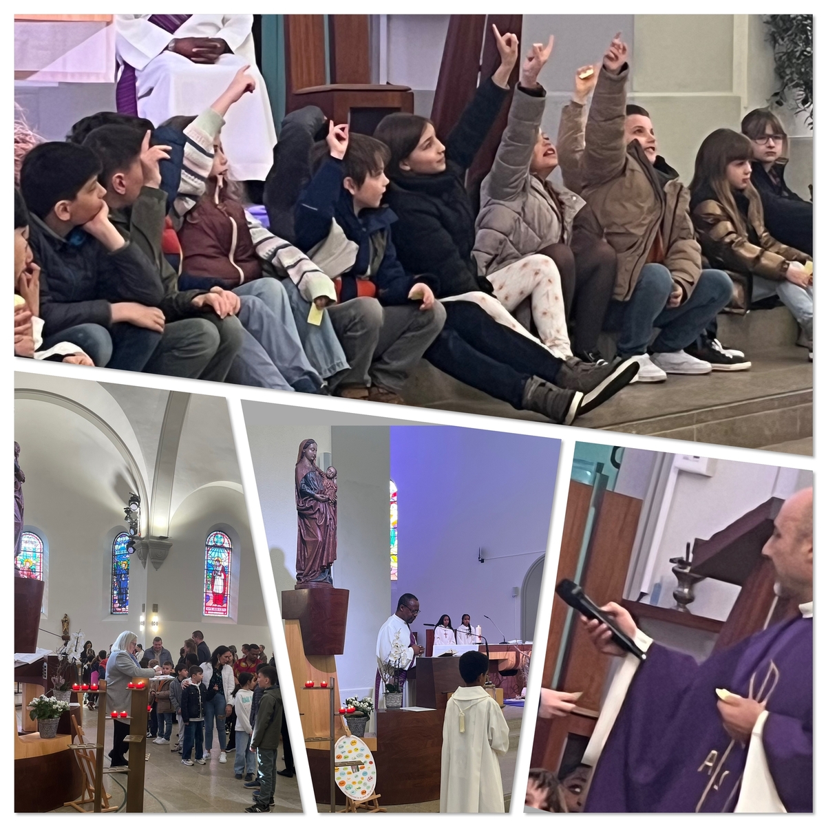 Dimanche 30 mars : au cours de cette messe durant laquelle les croix fabriquées par les parents pour leurs enfants (dans le cadre du chemin eucharistique qui prépare les enfants à leur première communion) ont été bénies, les enfants ont participé activement à l'homélie de l'abbé Charbel. Bravo pour leurs réflexions !